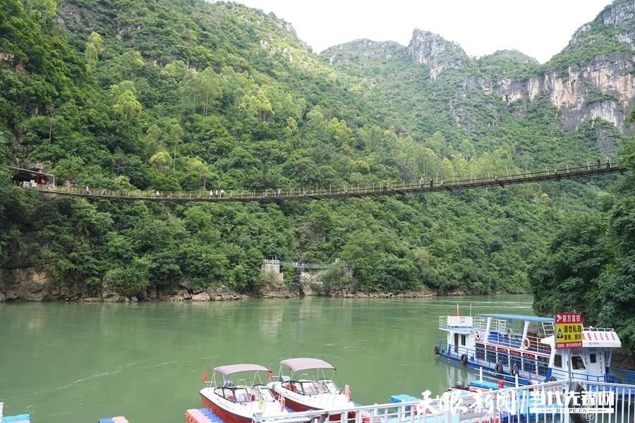 在花江峡谷的山间,一座铁索桥如凌空飞虹般扣挂于两山绝壁之上。71米的桥身横跨江面,2.9米的宽度承载着过往与今朝,在风里轻晃间,将70米下的碧波江水衬得愈发悠远。
